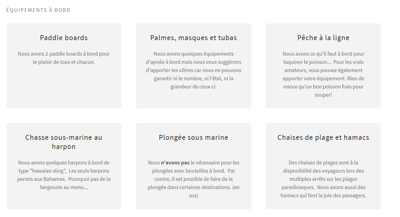 Nombre de cabines : 3 (dont une pour l’équipage )