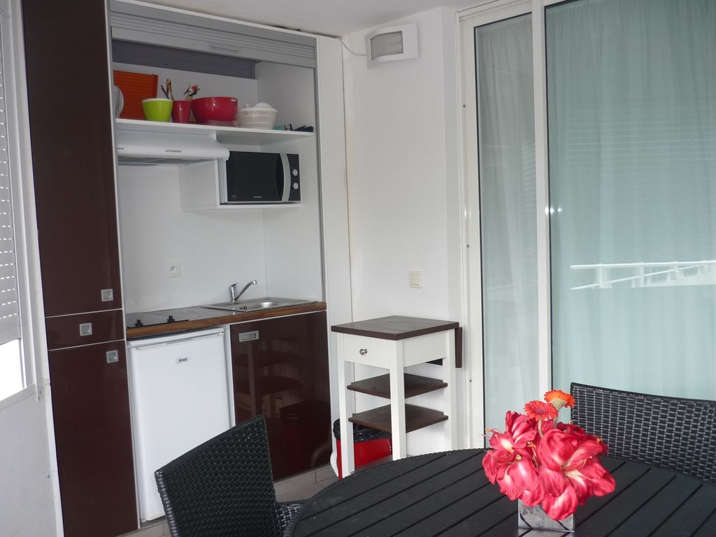 Le studio de 43 m² avec balcon, tout confort, climatisé, TV TNT écran plat, accès internet WIFI, kitchenette équipée.
