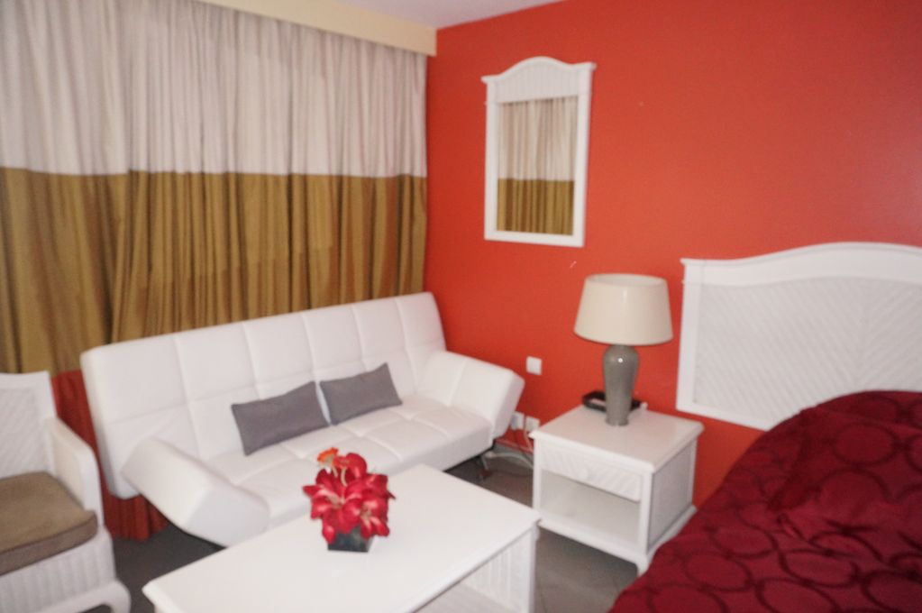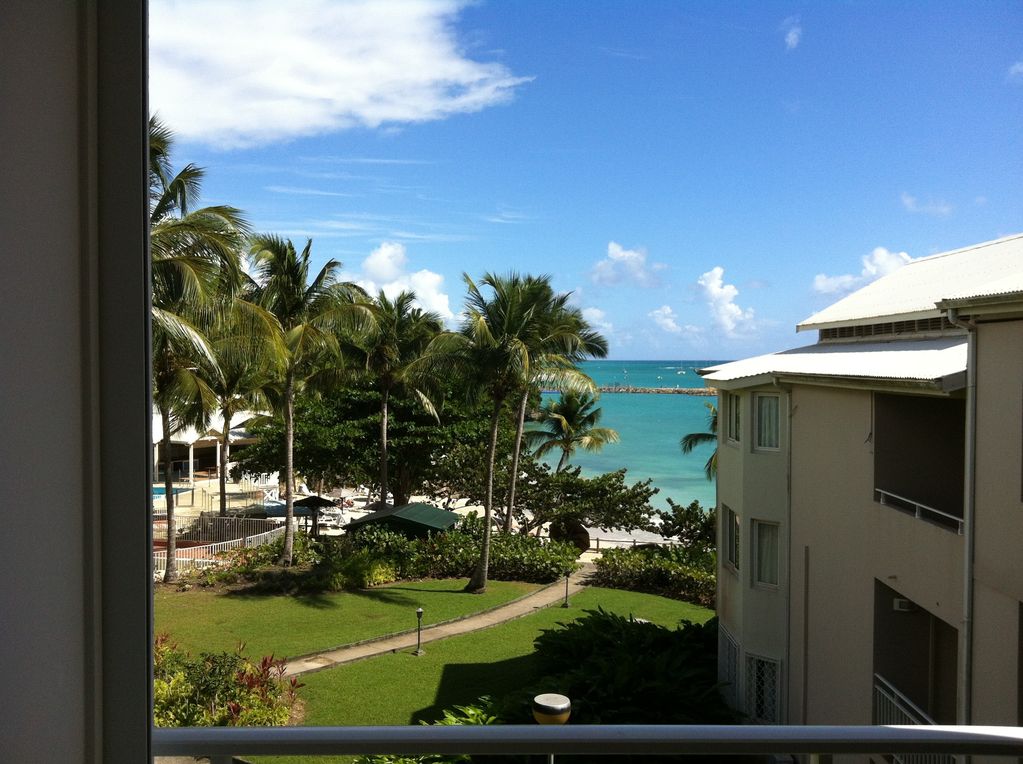 L’appartement est situé au centre du Gosier, dans une résidence avec un accès sécurisé par l’entrée de l’hôtel “Auberge de la Vieille tour”.