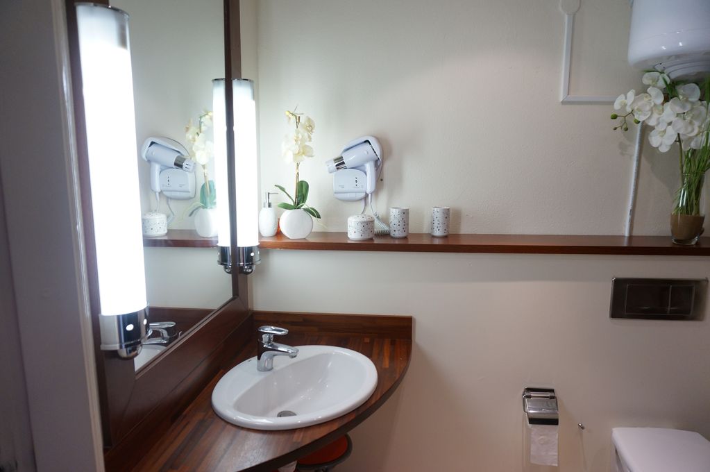 Appartement équipé d’une citerne tampon qui permet d’avoir de l’eau en permanence dans la salle de bain et les WC y compris pendant les journées avec coupures d’eau de 24h, fréquentes (2 à 3 fois par semaine) sur la commune du Gosier.