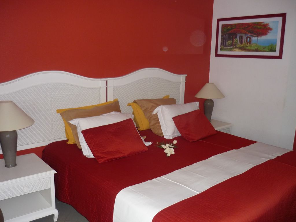 Il est situé au cœur d’un jardin tropical, en bord de plage privative, partagée avec l’hôtel, avec vue sur l’ilet du gosier.