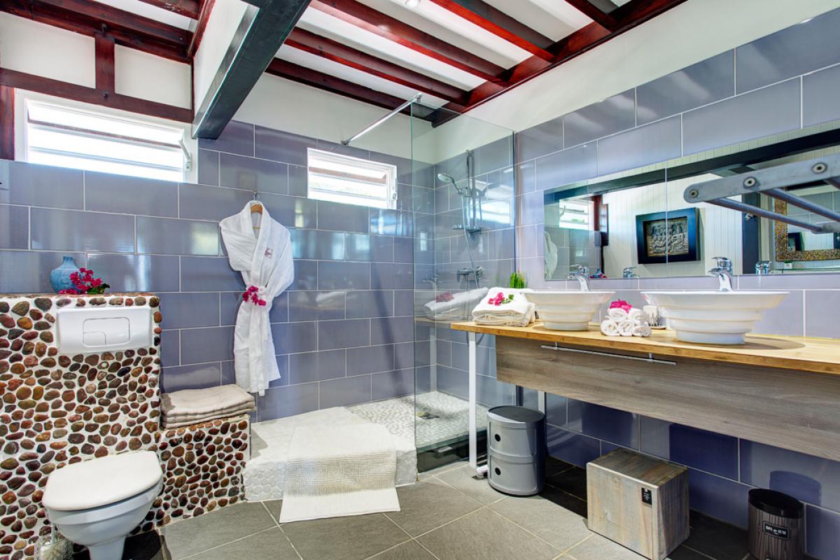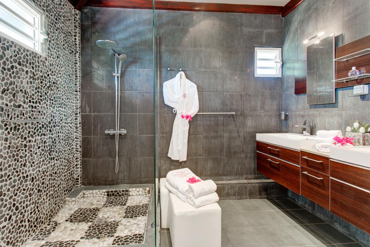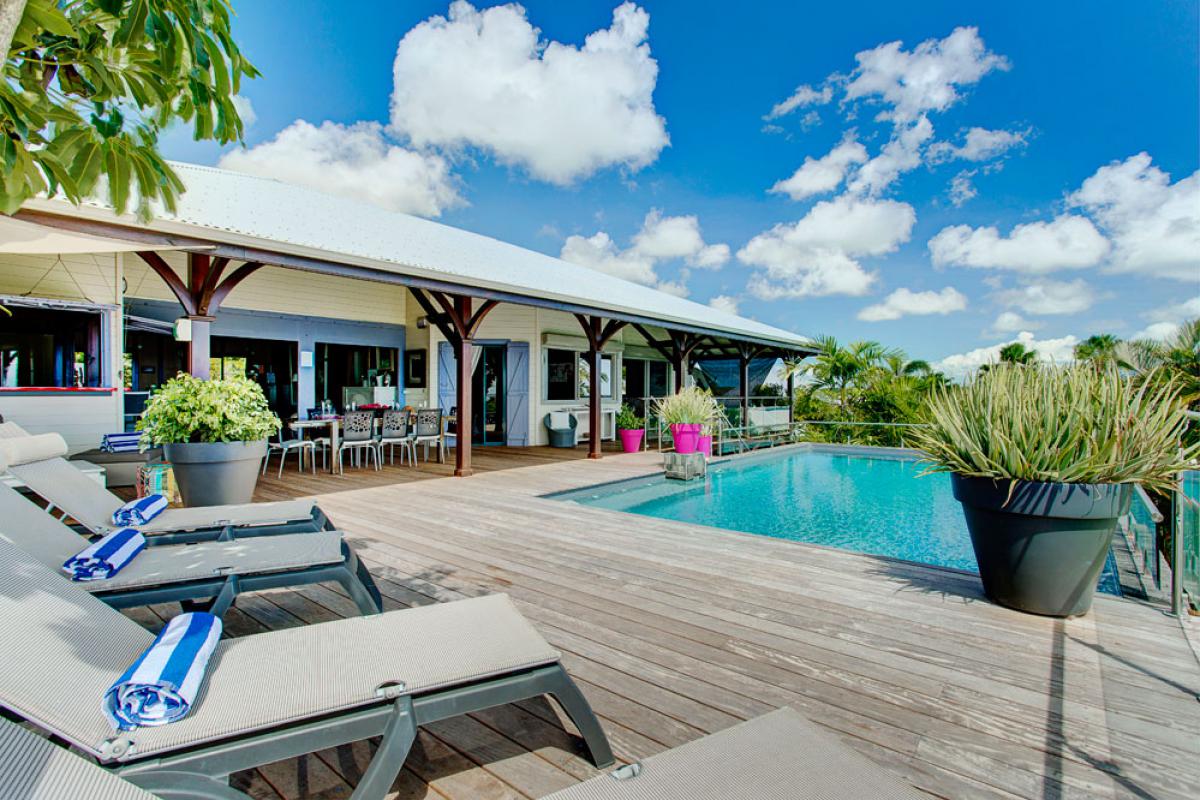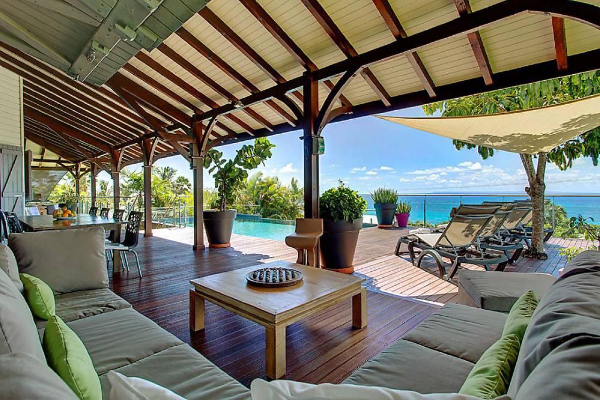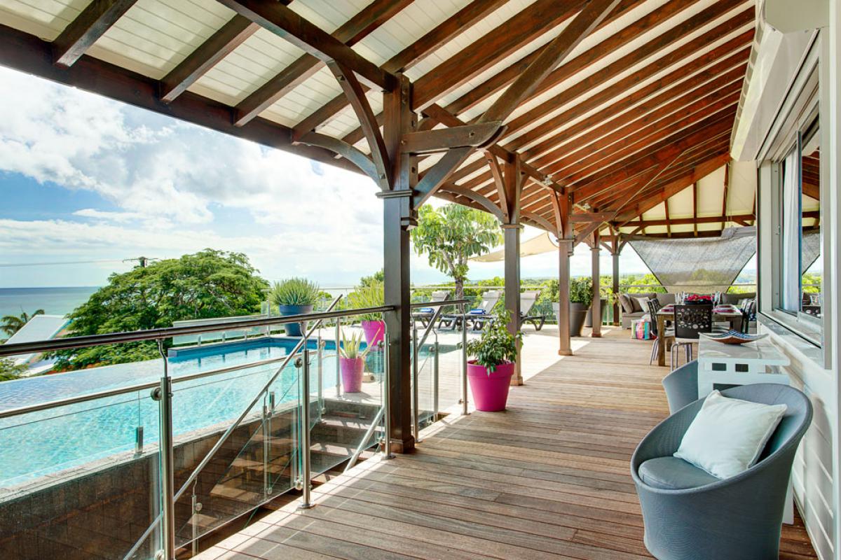 Que ce soit sur les terrasses près de la piscine à débordement se confondant aux couleurs de l’océan, dans les jardins, au abord du bassin inférieur ou sous les carbets balayés par les Alizées, vous apprécierez le luxe et le calme de cette villa de prestige où tout est réfléchit pour que vous profitiez au maximum de cette vue à 180° !!!