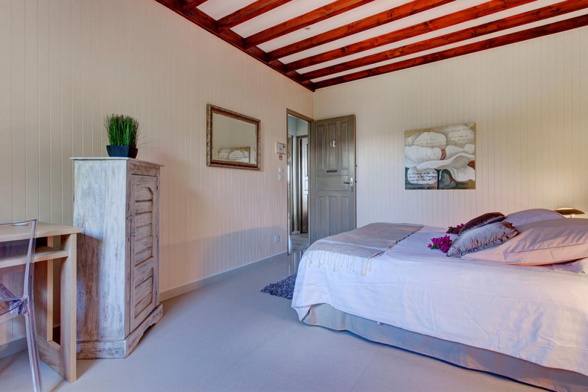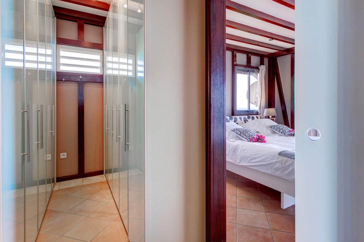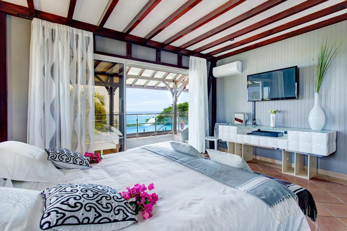 La Suite Master “Design”, de 50m², climatisée et équipée d’un lit double King Size (180cm), avec son dressing et sa salle de douche privative et toilette – Vue Mer,