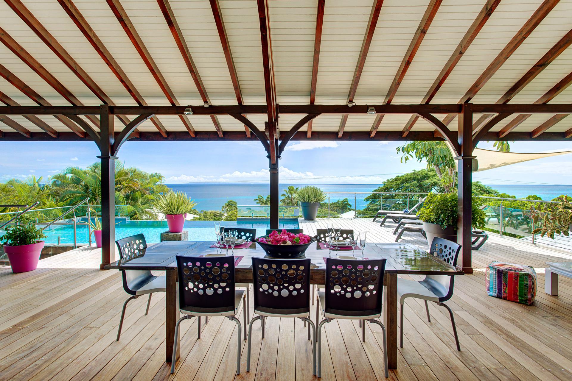 Vous bénéficiez d’une vue époustouflante sur la mer des Caraïbes et ses iles avoisinantes : Marie Galante, la Dominique, les Saintes, et la Basse Terre.
