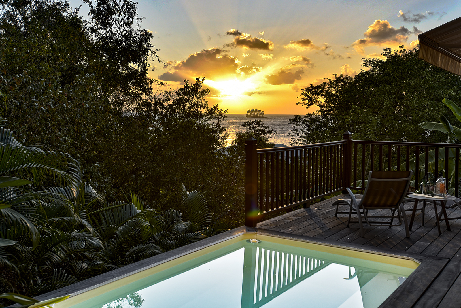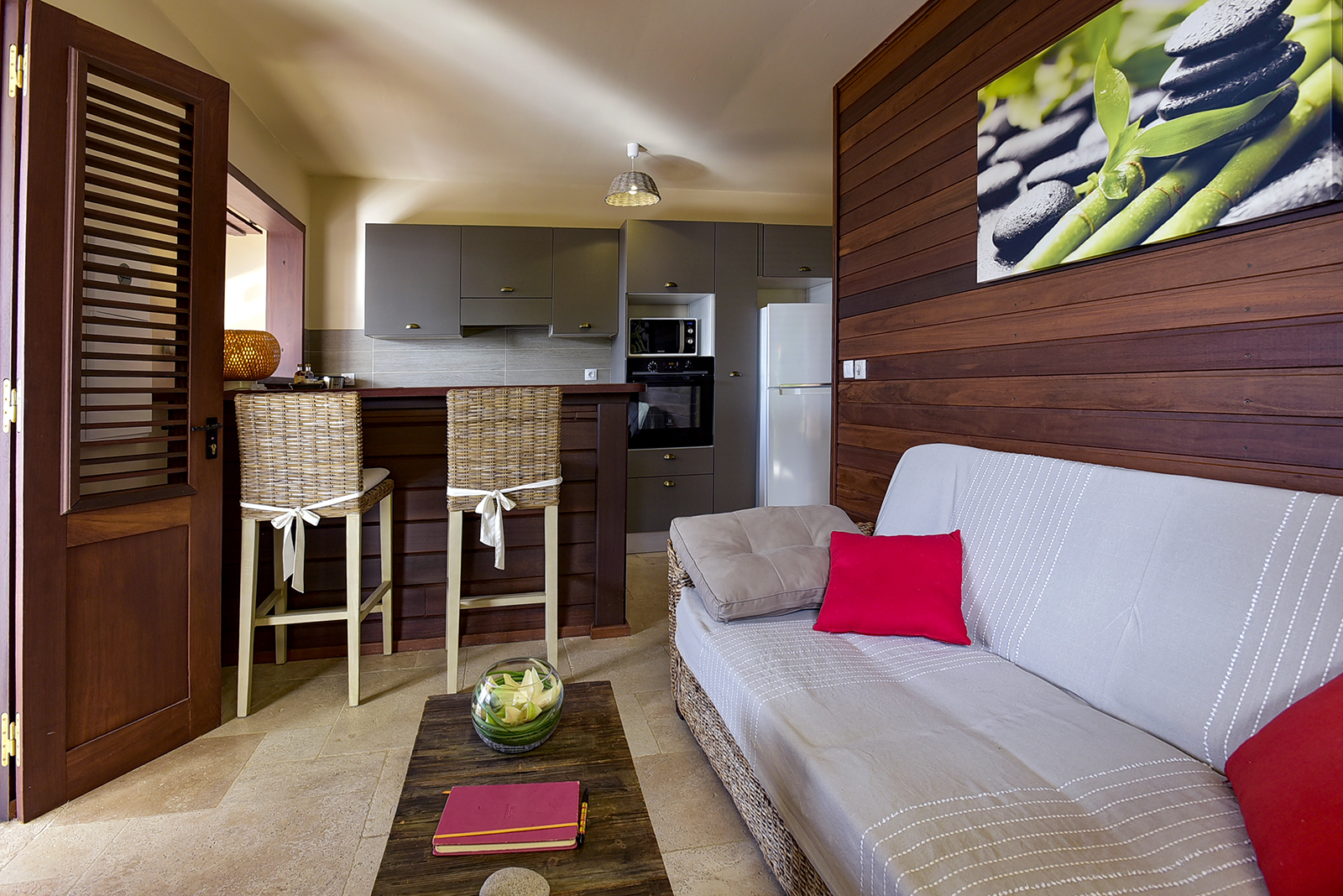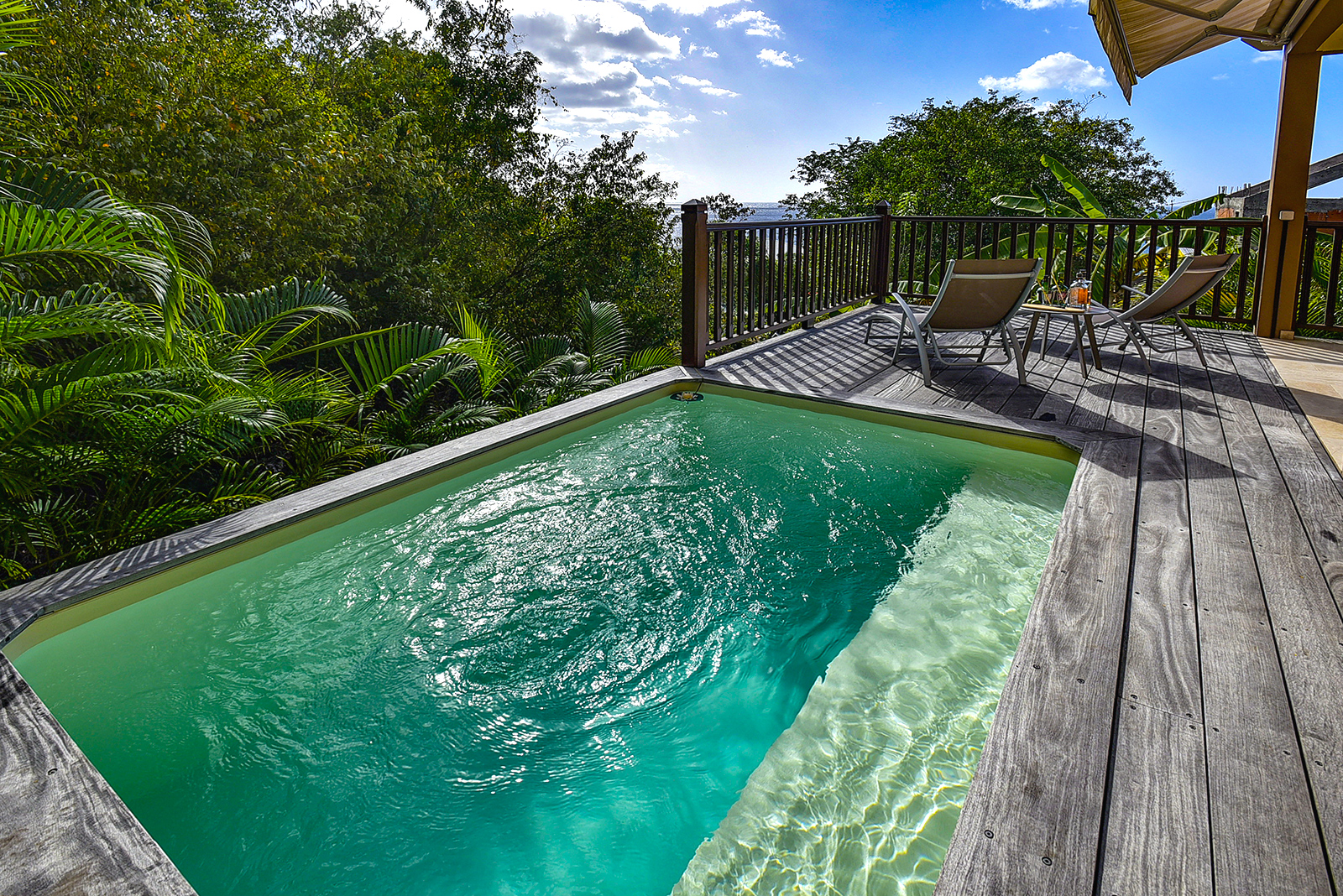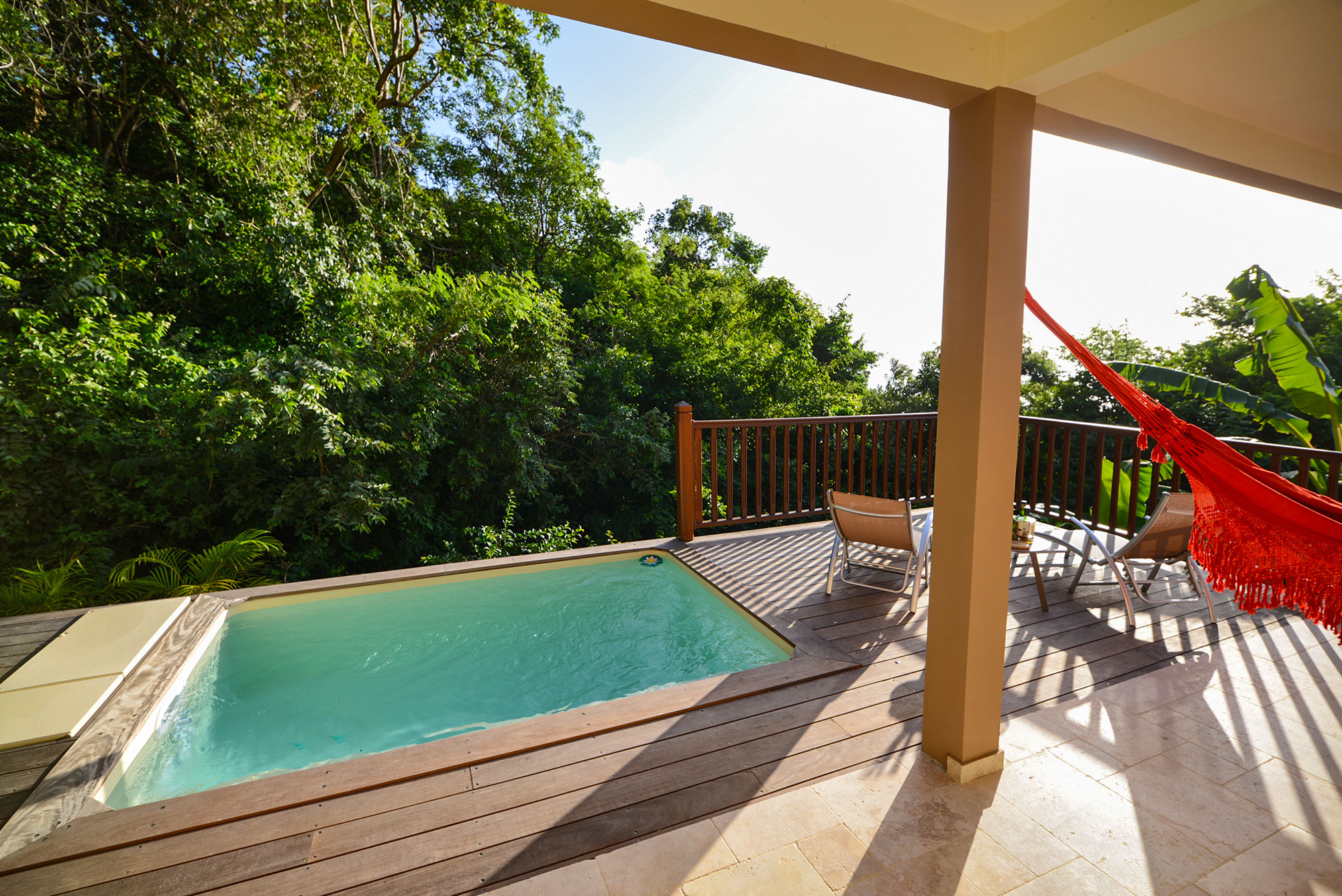 L’appartement se compose d’un salon avec une cuisine ouverte, d’une chambre climatisée et d’une jolie salle d’eau. La terrasse récemment équipée d’une petite piscine dit “Bac à Punch” vous offre un bel espace détente et repas pour profiter du coucher de soleil sur la mer