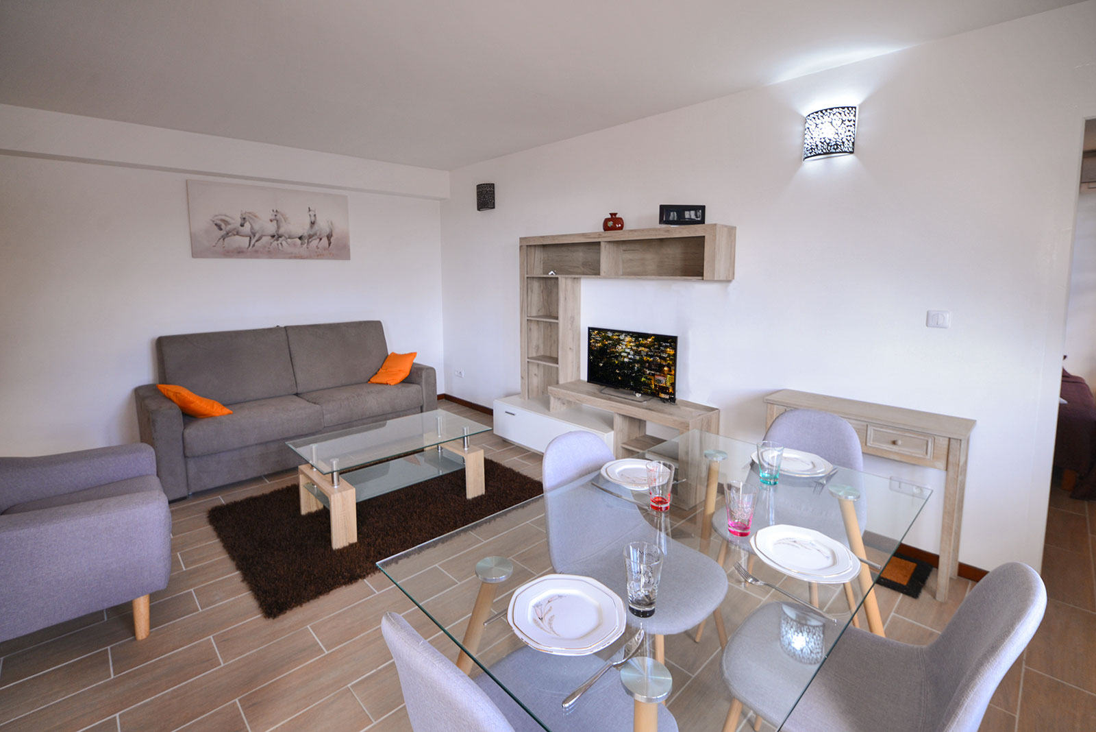 La location comprend: une terrasse, un salon, une cuisine équipée, une chambre climatisée.
