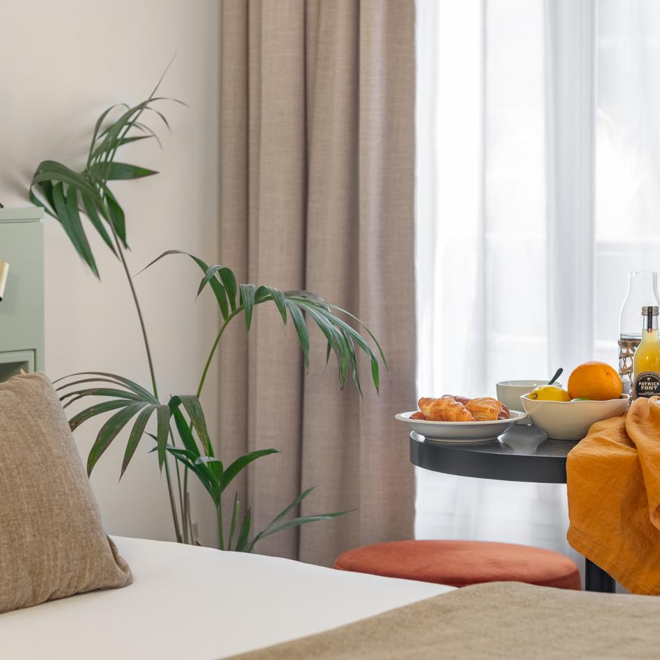 Vivre une expérience authentique au cœur de Paris.        Une résidence hôtelière design et confortable situé en plein cœur de Paris pour les voyageurs souhaitant vivre loin de chez eux, une expérience originale et authentique. Comme à la maison, le cœur de chaque appartement bat dans la cuisine, entièrement équipée, pour permettre à chacun de se sentir chez lui pendant quelques heures ou quelques semaines.   Des appartements tout équipés où aventuriers, couples et familles pourront s’épanouir en profitant d’un cadre inspirant et chaleureux.