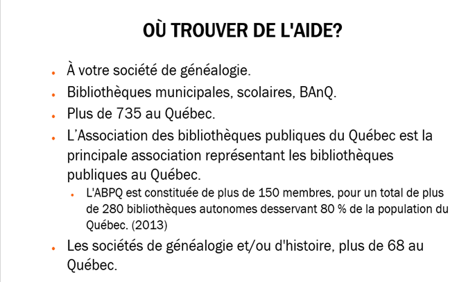 - Power Point Mr Jocelyn Dubuc (Société de Généalogie de Lanaudière) Atelier: Outils pour débuter son arbre généalogique. voir