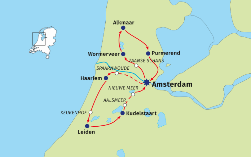 Amsterdam -Wormerveer - Alkmaar - Purmerend - Haarlem - Leiden - Kudelstaart